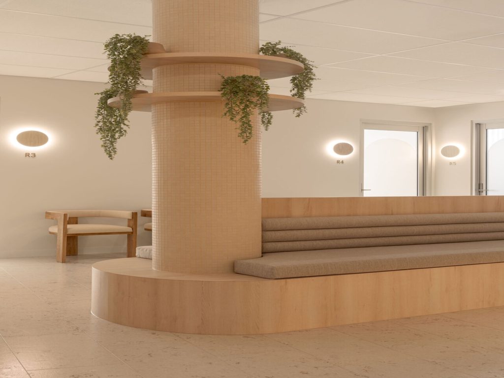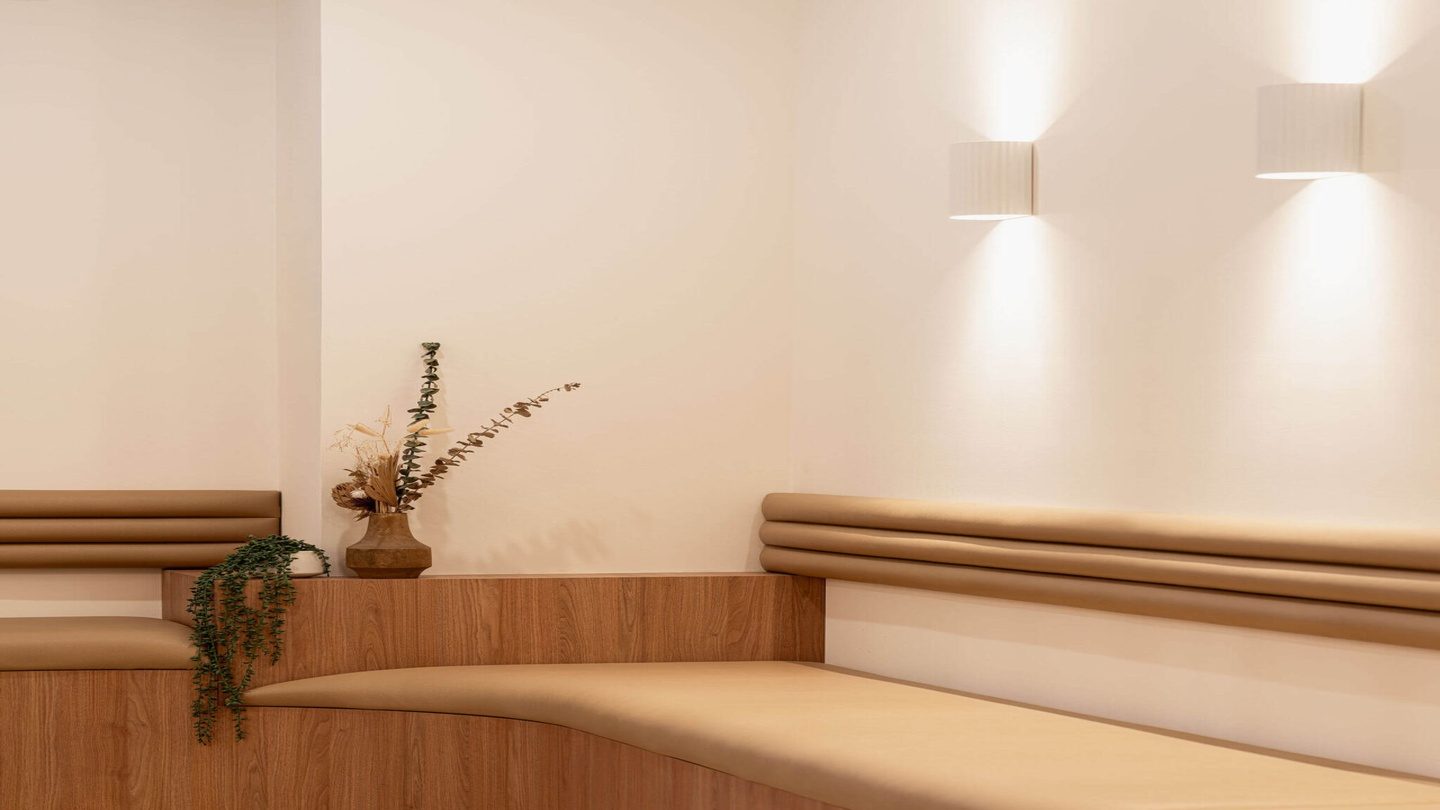- A calming waiting area with soft lighting and comfortable seating